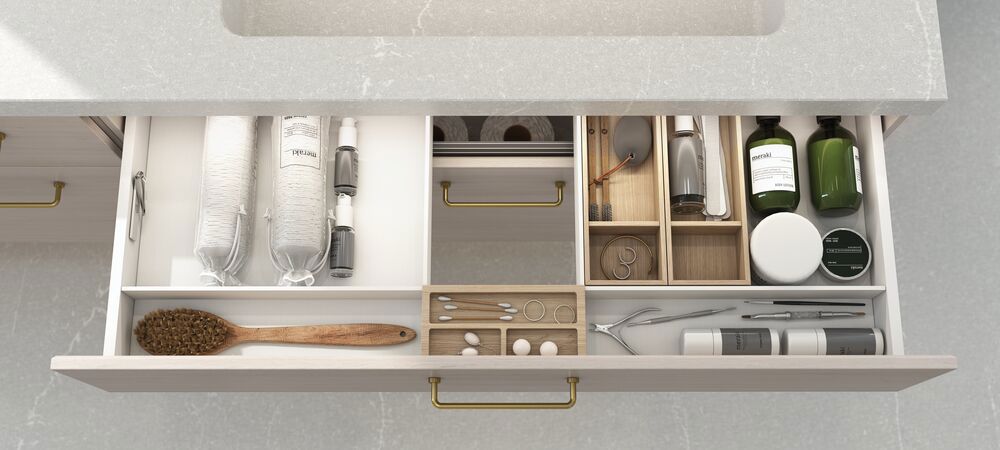 Stellen Sie sich einen Schrank vor, der sowohl schön als auch nützlich in Ihrem Badezimmer ist - das ist der Dansani Calidris Waschtischunterschrank mit 2 Schubladen. Und hier erhalten Sie sogar einen Waschtischunterschrank mit einer höheren unteren Schublade, die Ihnen viel Stauraum in Ihrem Badezimmer bietet. Der Waschtischunterschrank mit seiner minimalistisches und schlichtes Design, verleiht Ihrem Bad einen modernen Ausdruck. In den beiden großen Schubladen lassen sich nicht nur Dinge verstauen, sie sorgen auch für Ordnung in Ihrem Bad. Wenn Sie also ein ordentliches und aufgeräumtes Badezimmer wünschen, ist der Dansani Calidris Waschtischunterschrank mit 2 Schubladen die richtige Wahl für Sie. OBS: Für Produkte mit Eiche und wahlfreie Farbe fällt eine Aufpreis (BI1) an. Einmalige Berechnung, unabhängig von der Anzahl der Elemente. Überlegen Sie Ihre Badmöbel mit praktischem Zubehör auszustatten, an denen Sie täglich Freude haben werden. Wie z.B. LED-Beleuchtung in den Schubladen, Innenbeleuchtung in den Schränken, eine eingebaute Steckdose und LED-Beleuchtung unter dem Schrank inkl. Bewegungssensor und Lichtsteuerung die Ihren nächtlichen Besuch im Bad führt. Das Zubehör wählen Sie direkt mit Ihren Möbeln aus.