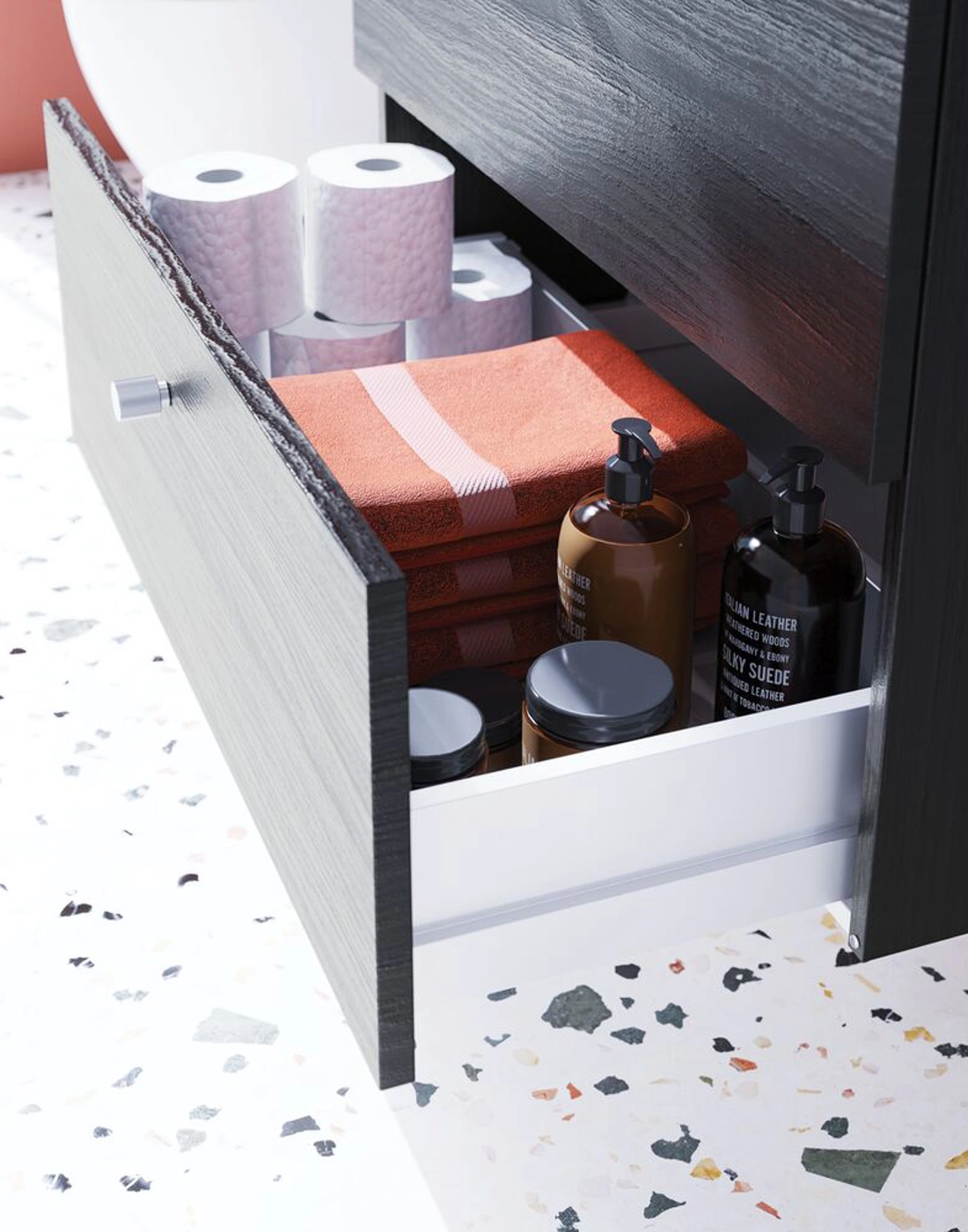 Der Dansani Mido+ Waschtischunterschrank mit 2 Schubladen ist dänisches Design zu einem erschwinglichen Preis. Mido+ ist einer preiswerten Serie, aber es gibt keine Kompromisse bei Design oder Materialien. In diesem schönen Waschtischunterschrank finden Sie 2 Schubladen zur Aufbewahrung Ihrer Badutensilien, und natürlich können Sie hierzu auch verschiedenen Zubehör dazu wählen. Der Dansani Mido+ Waschtischunterschrank ist in einer breiten Farbpalette erhältlich, so dass Sie einen Waschtischunterschrank erhalten, der zu Ihrem Badezimmer und Ihrem persönlichen Stil passt. Alle Mido+-Schränke werden mit dem klassischen Base-Griff in Chrom geliefert. Sie können problemlos einen anderen Griff wählen, aber denken Sie daran, dass er zusammen mit Ihren Möbeln bestellt werden muss. Überlegen Sie Ihre Badmöbel mit praktischem Zubehör auszustatten, an denen Sie täglich Freude haben werden. Wie z.B. Beleuchtung und Holzkassetten in den Schubladen.