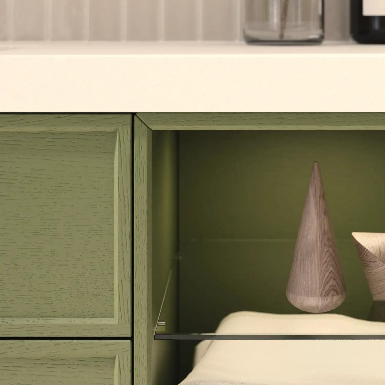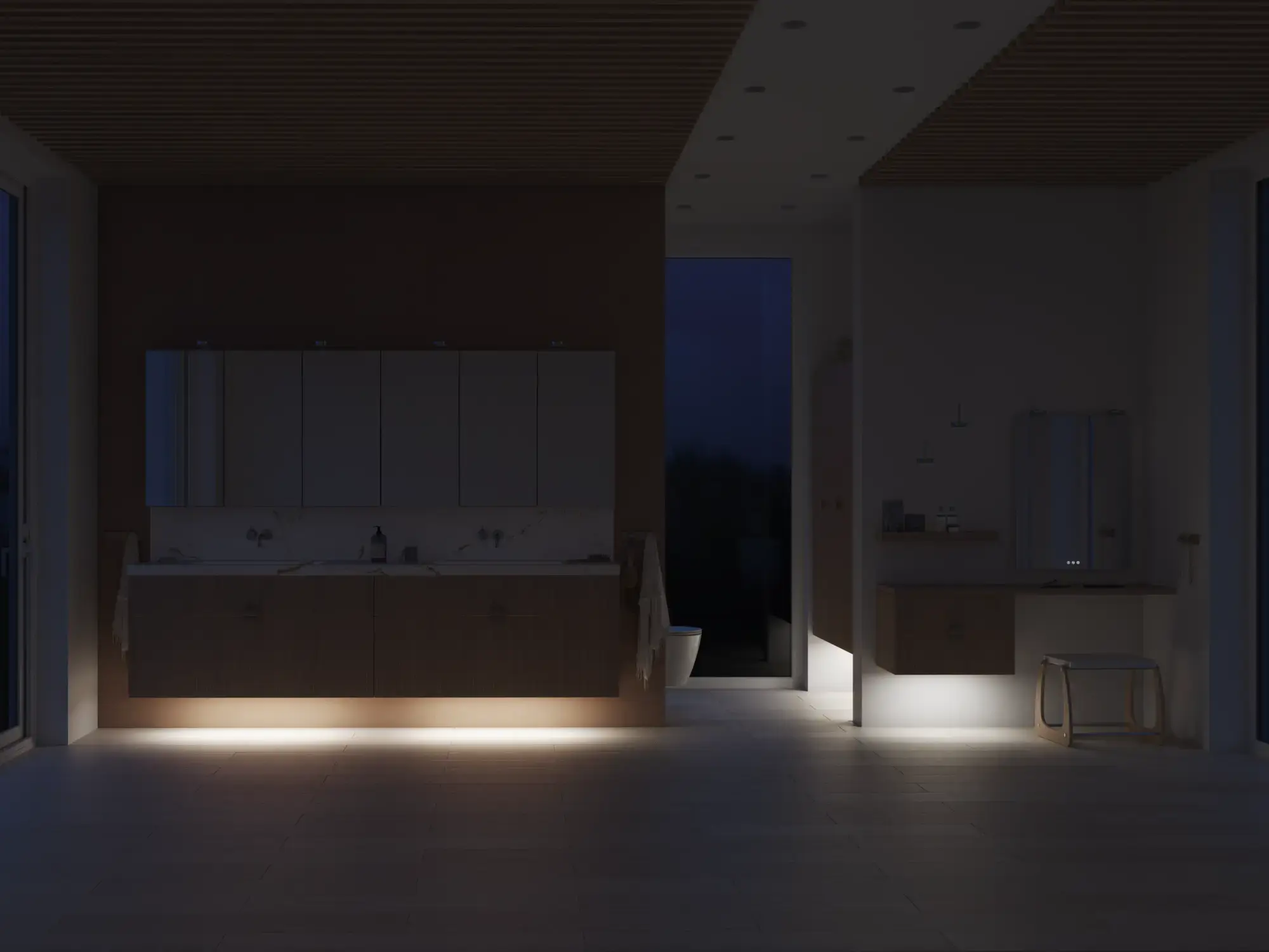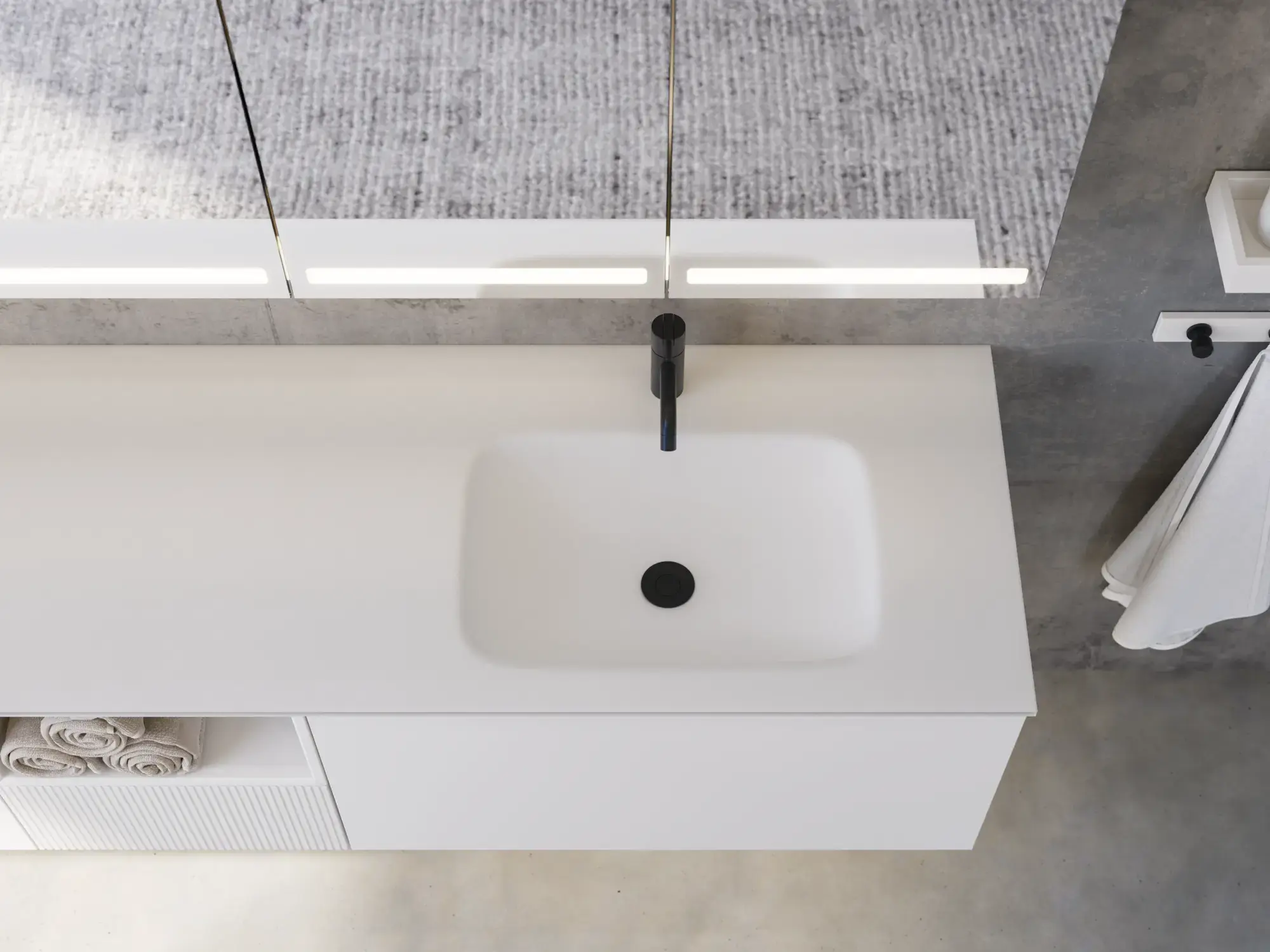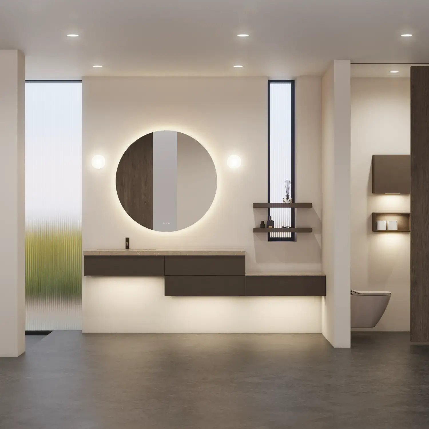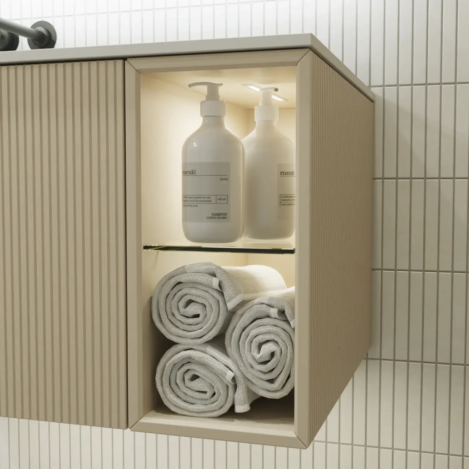 Wenn Ästhetik und Funktion miteinander verschmelzen, entsteht ein Raum in perfekter Balance. Mit Calidris können Sie das gesamte Badezimmer in einem durchgängigen Ausdruck gestalten – von den eleganten Spiegelschränken und offenen Regalen bis hin zu den schwebenden Hochschränken mit Licht darunter. Die klaren Linien, die taktilen Fronten und die durchdachten Details schaffen eine Atmosphäre von Ruhe und Exklusivität.