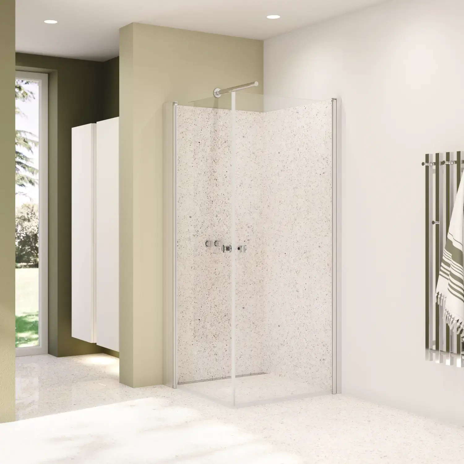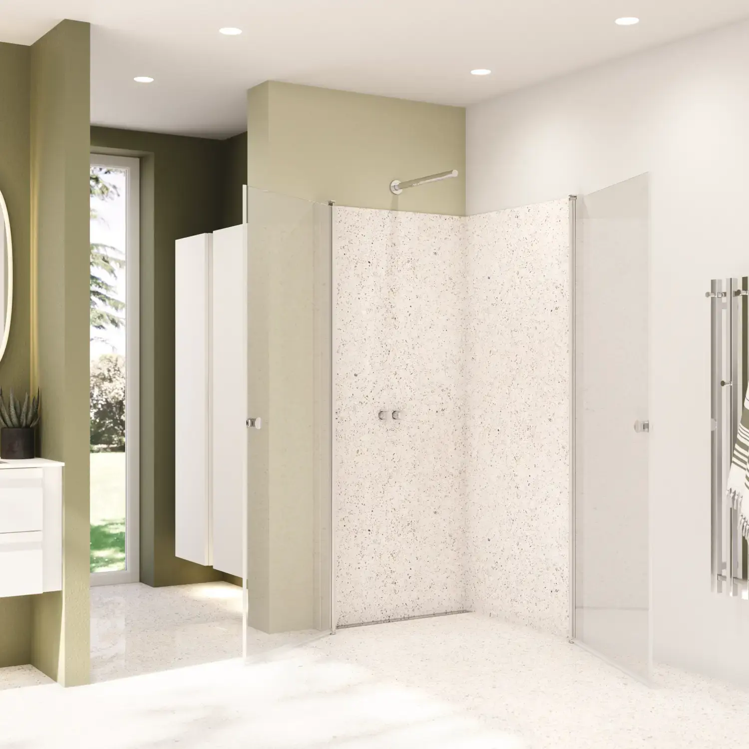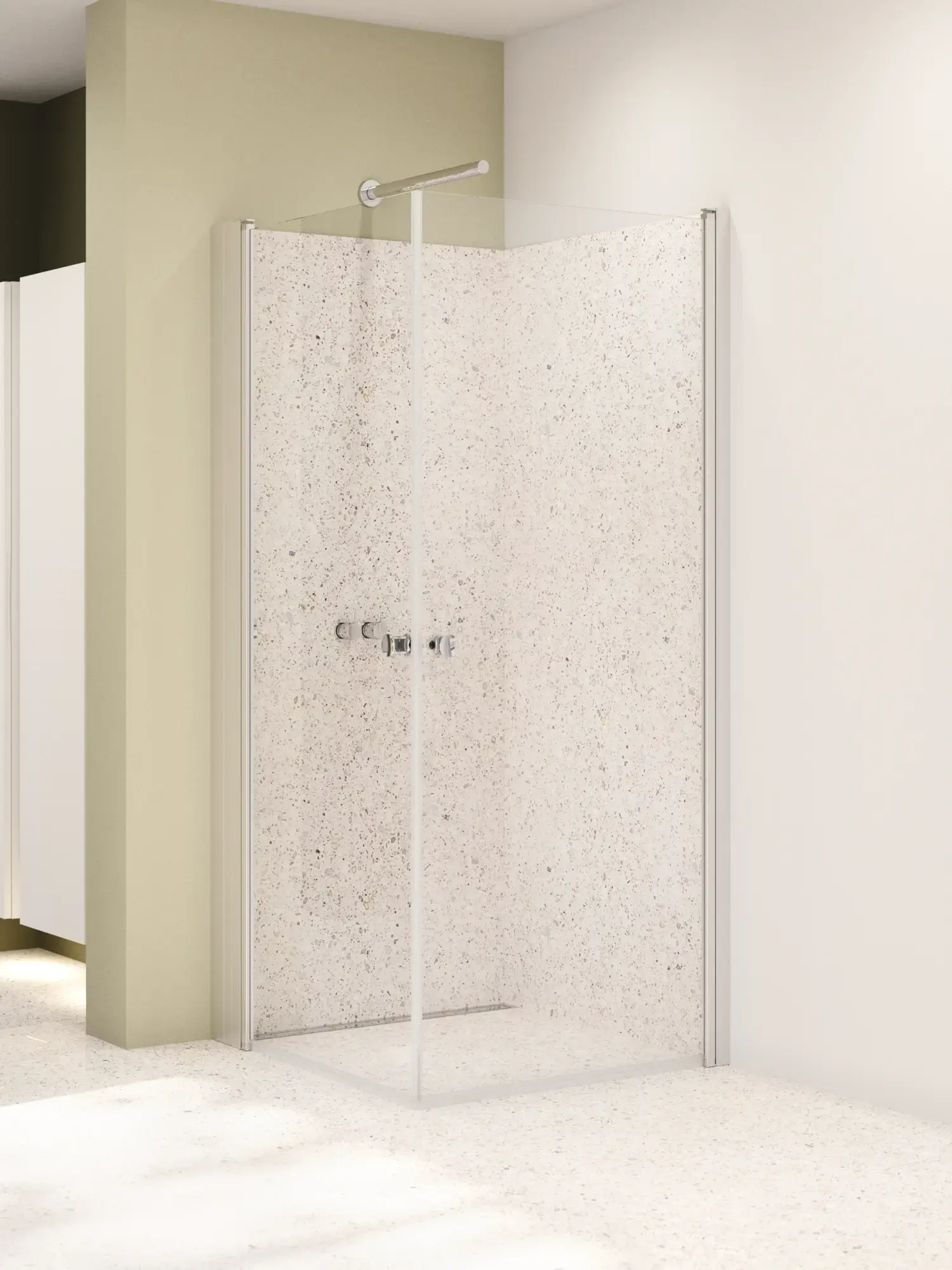 Dansani Match klassische Duschecken mit zwei Duschtüren, die sich nach außen und innen öffnen lassen, bieten viel Bodenfläche und lassen das kleinste Badezimmer optisch größer wirken, wenn Sie die Dusche gerade nicht nutzen.