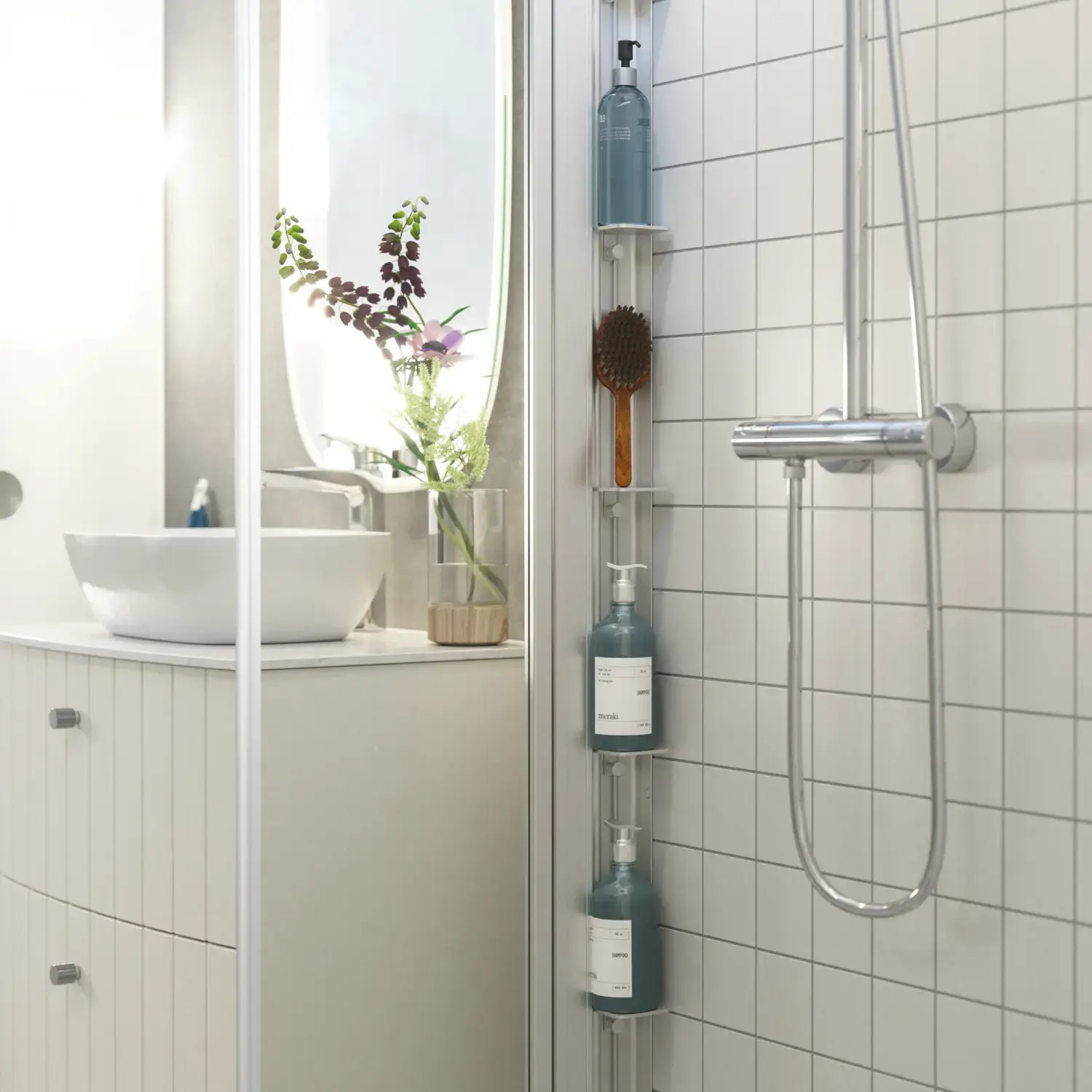 Niemand mag ein unordentliches Badezimmer, was vor allem für den Duschbereich gilt. Mit der Eckablage Tower als integriertem Teil der Match-Serie hat man Platz für Shampoo, Seife und all die Dinge, die man unter der Dusche benötigt.