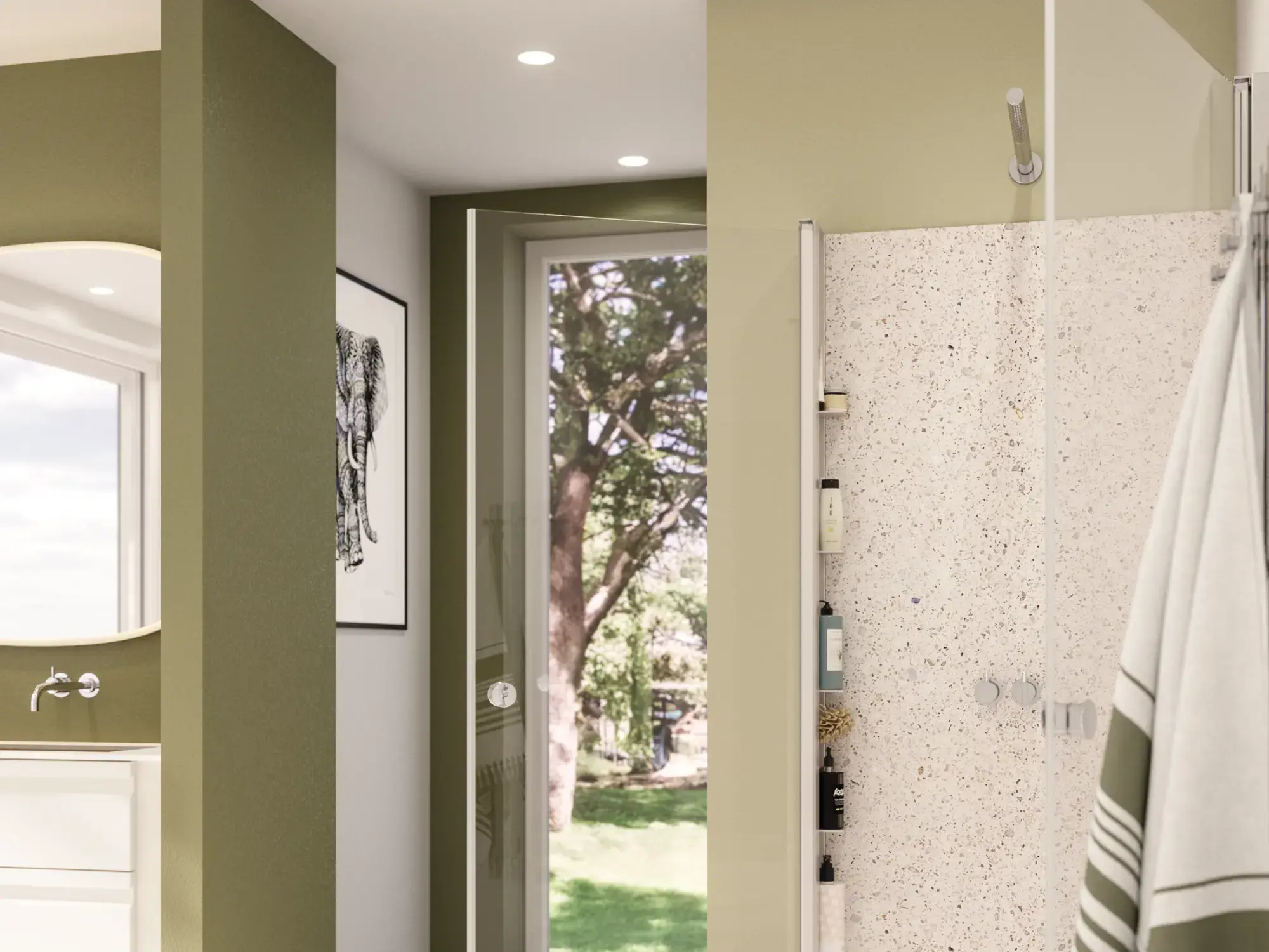 Haben Sie ein kleines Badezimmer, so können Sie den Platz bis dicht an die Dusche nutzen, wenn Sie eine Tür mit Duschwand wählen. Die Dansani Match Duschtüren lassen sich nach innen klappen, so dass sie nur wenig Platz beanspruchen.